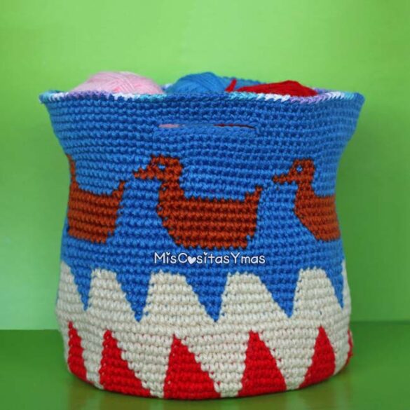 Qué preciosa cesta!!!…y el detalle de los patitos me encantó.Gracias por compartir el patrón.